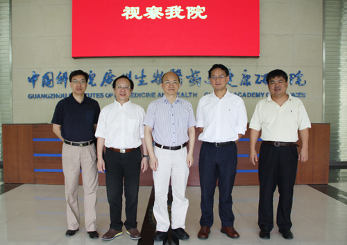 2012年7月16日,中科院副院长张亚平一行来广州生物院调研。中科院生物局副局长苏荣辉陪同调研。