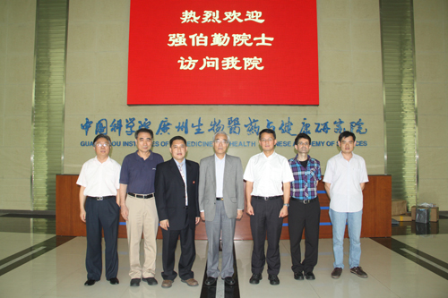 中国科学院院士、国家973计划顾问组专家、国家人类基因组北方研究中心(CHGB)主任,中国医学科学院协和医科大学教授强伯勤应邀到中科院广州生物医药与健康研究院指导工作。广州生物院院长裴端卿热情接待了来宾。
